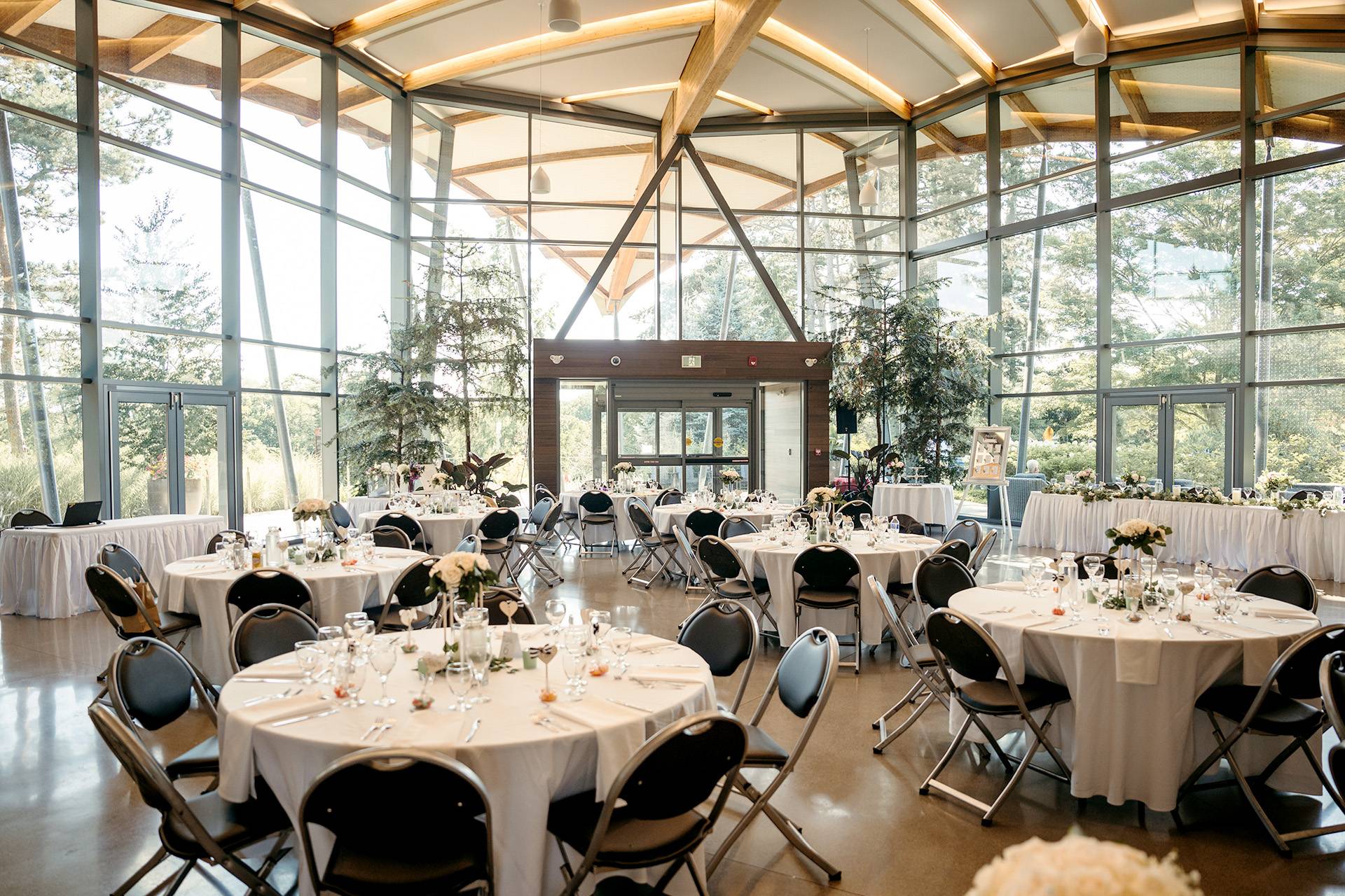 Access to the venue is convenient by public transit, with ample parking available in the large lots adjacent to the main entrance. For those arriving by train, the nearest station is easily accessible by bus. If you are traveling by plane, the closest airport is also well-connected to local transit options, ensuring a smooth journey. Upon arrival, guests can enter through the main entrance and proceed to the event spaces with clear directional signage. The venue is fully accessible, welcoming all guests.